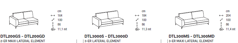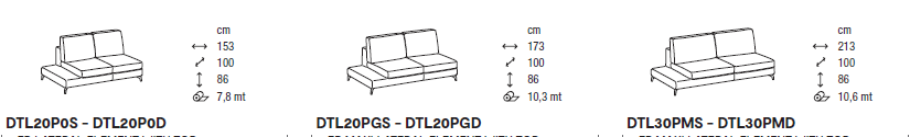 Диван имеет анатомичную высоту 86 см, есть готовые варианты прямого дивана, углового элемента, пуфа и шезлонга. Есть возможность использовать элементы с внедрением деревянной полочки в шпоне, которая с успехом заменяет журнальный столик. Для обивки используются все отделочные материалы, включая ткани в большом ассортименте, кожи различных категорий и искусственную замшу bedford.