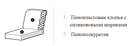 Наполнитель всех подушек спинки включает перья.