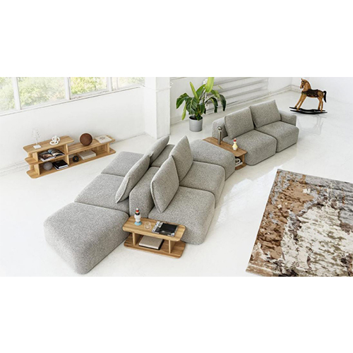 Дополнения в виде деревянных подлокотников и соединителей, а также модульного книжного шкафа обогащают функциональный сценарий дивана. Вы можете обставить пространство гостиной согласованным образом с элементами, входящими в эту коллекцию. Они также могут функционировать как независимая мебель.