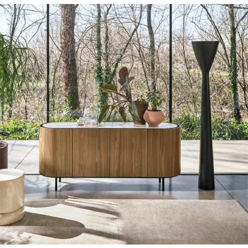 Lake - это коллекция тумб с мягкими изогнутыми линиями. Овальная форма подчеркнута утопленной столешницей, которая немного меньше по периметру, что создает полезное пространство для открывания дверей и выдвижных ящиков. Отделанный со всех сторон и лишенный острых краев, сервант идеально подходит для размещения в любом месте гостиной.