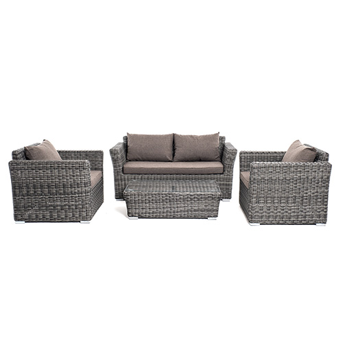 Мебель изготовлена из прочного алюминиевого каркаса, вручную оплетённого круглым искусственным ротангом.