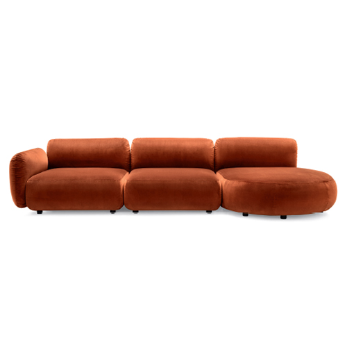 Большая вариативность композиций за счет угловых блоков и конфигураций центральной части. С 2-мя видами шезлонгов извилистых и округлых форм, напоминающих о 70-х годах. Одно- и двухсторонняя спинка.